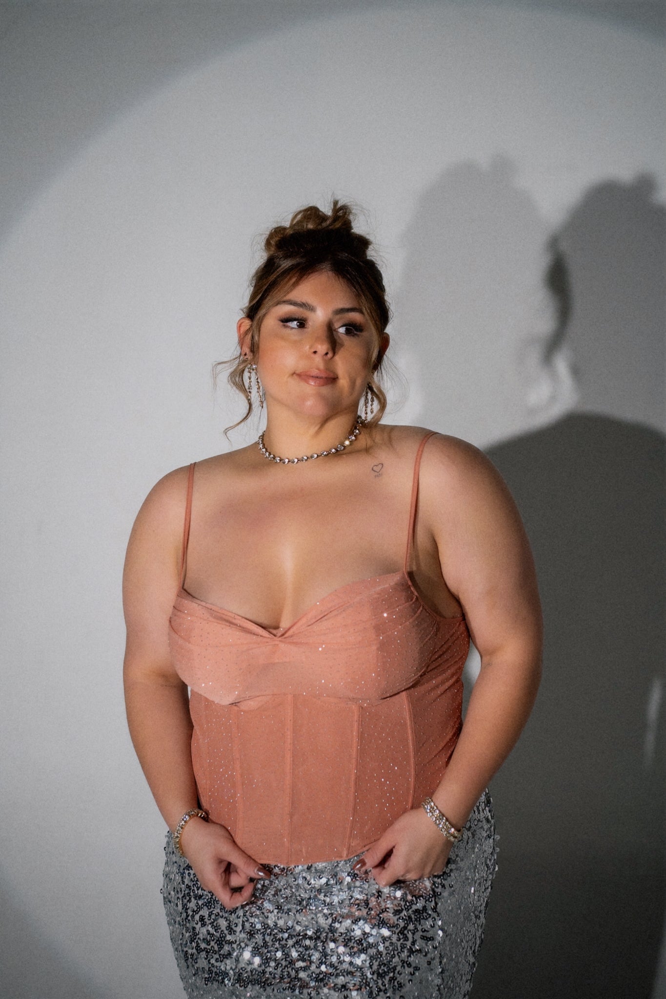 The BETSY Rhinestone Tank Top is your ticket to effortless glam. Rhinestones sparkle while adjustable straps and a back zipper keep things practical. Wireless padding and mild boning create a flattering fit that feels as good as it looks—no compromises, just pure fun.