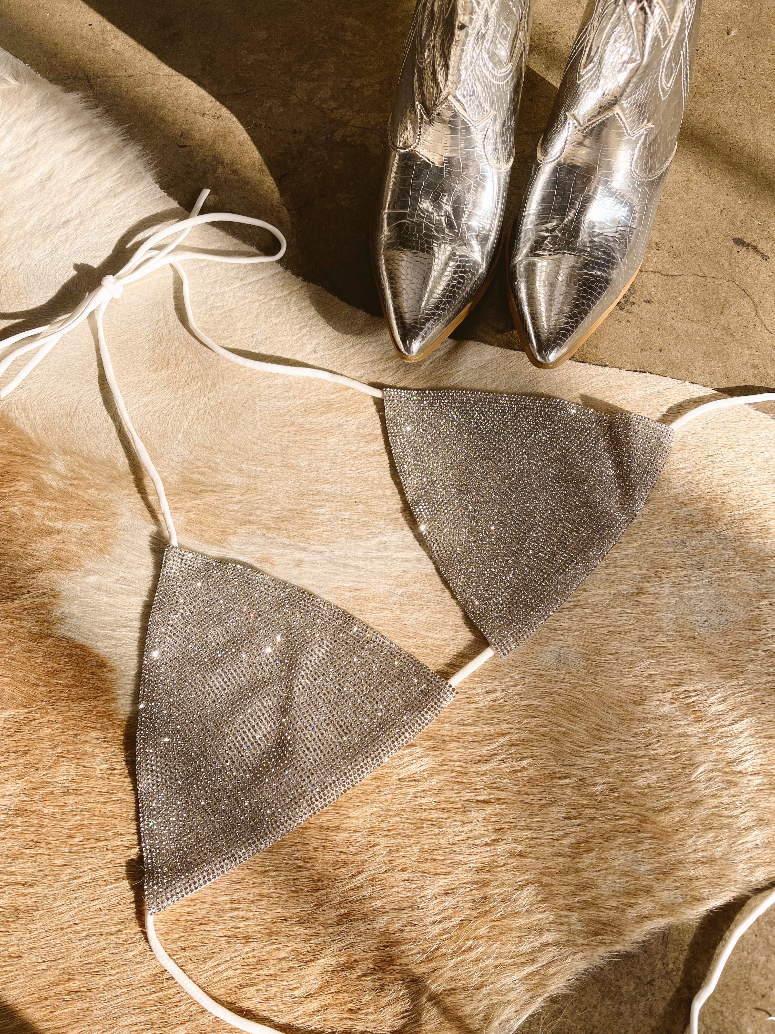 Main Character energy? We got you! The CRYSTAL bra top is the moment. Features a full rhinestone bust with adjustable straps.