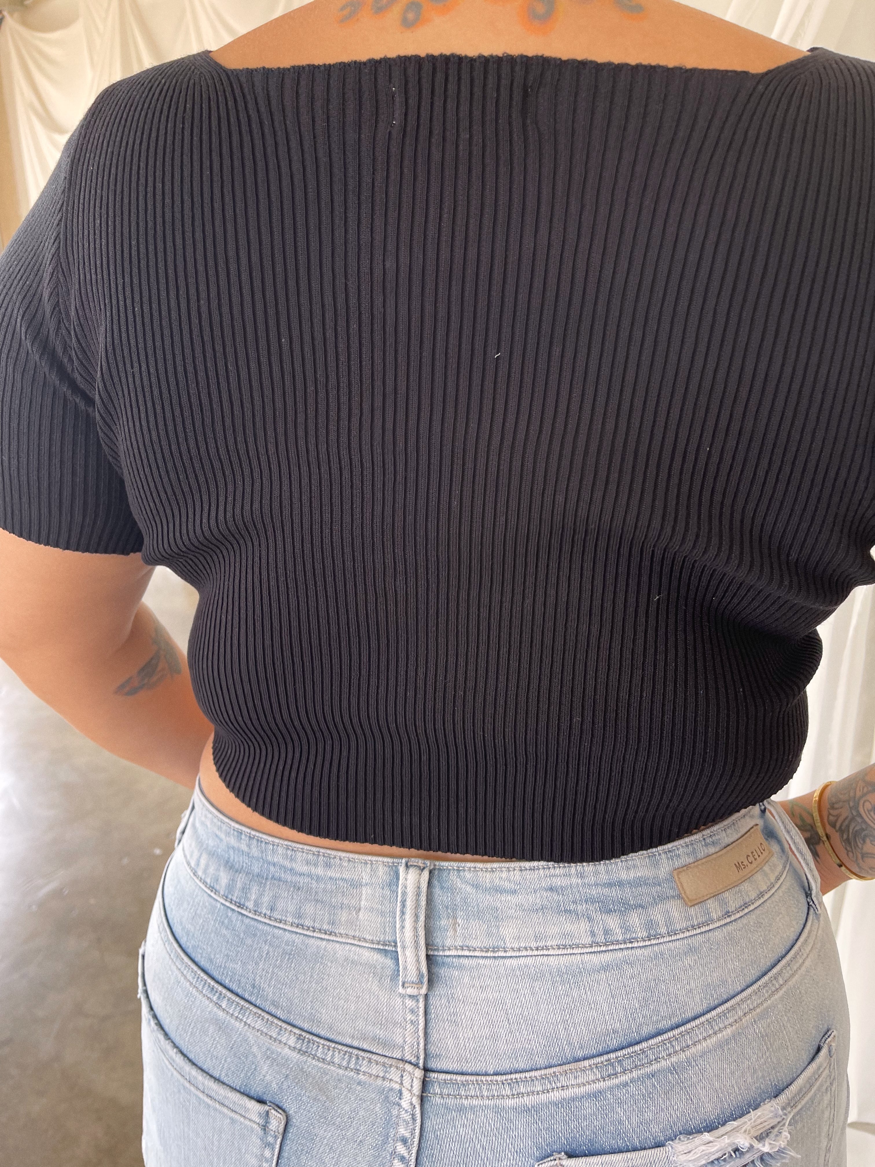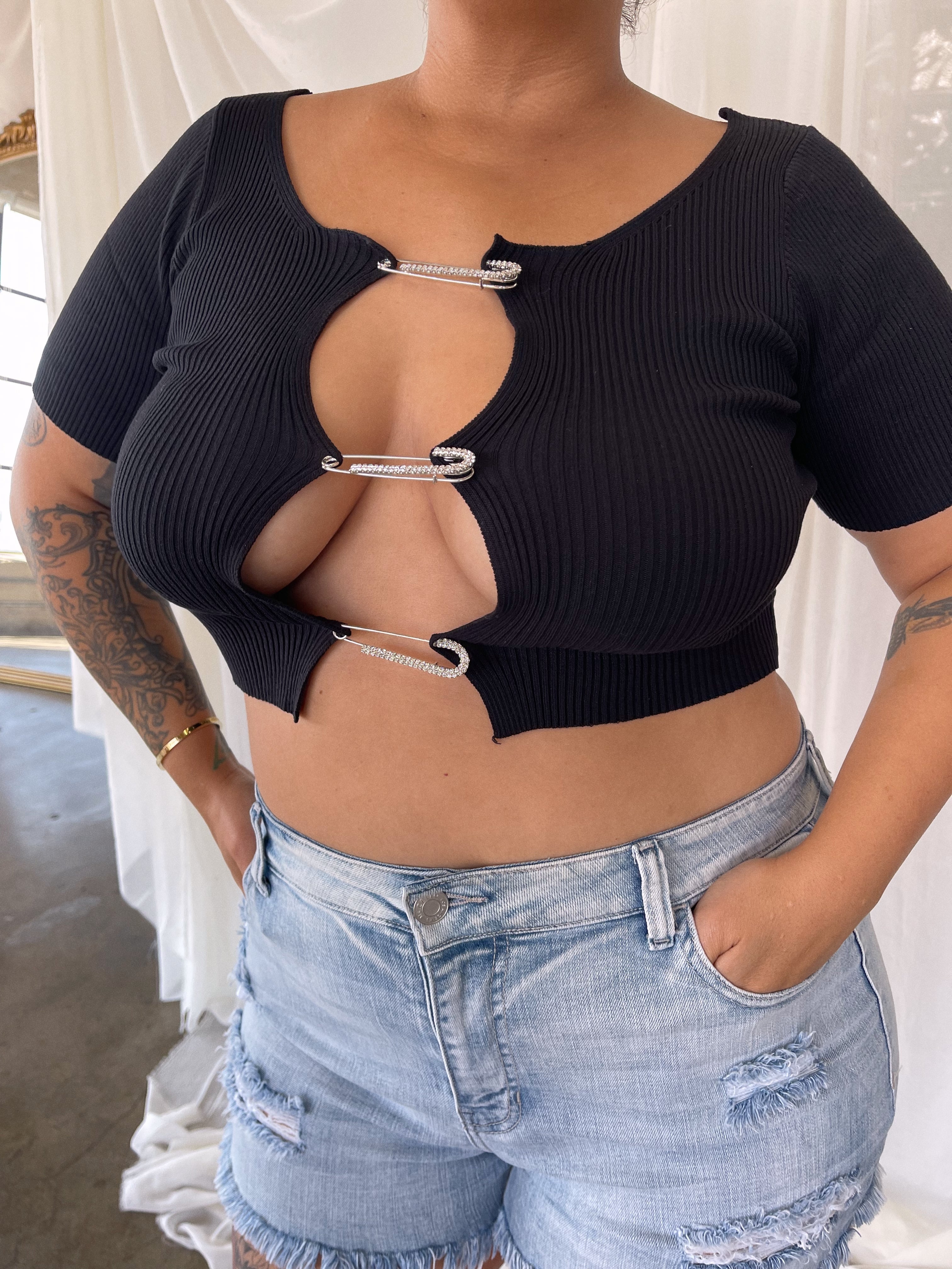 DIAMOND Black Soft Ribbed Crop Top with Safety Pin Closure