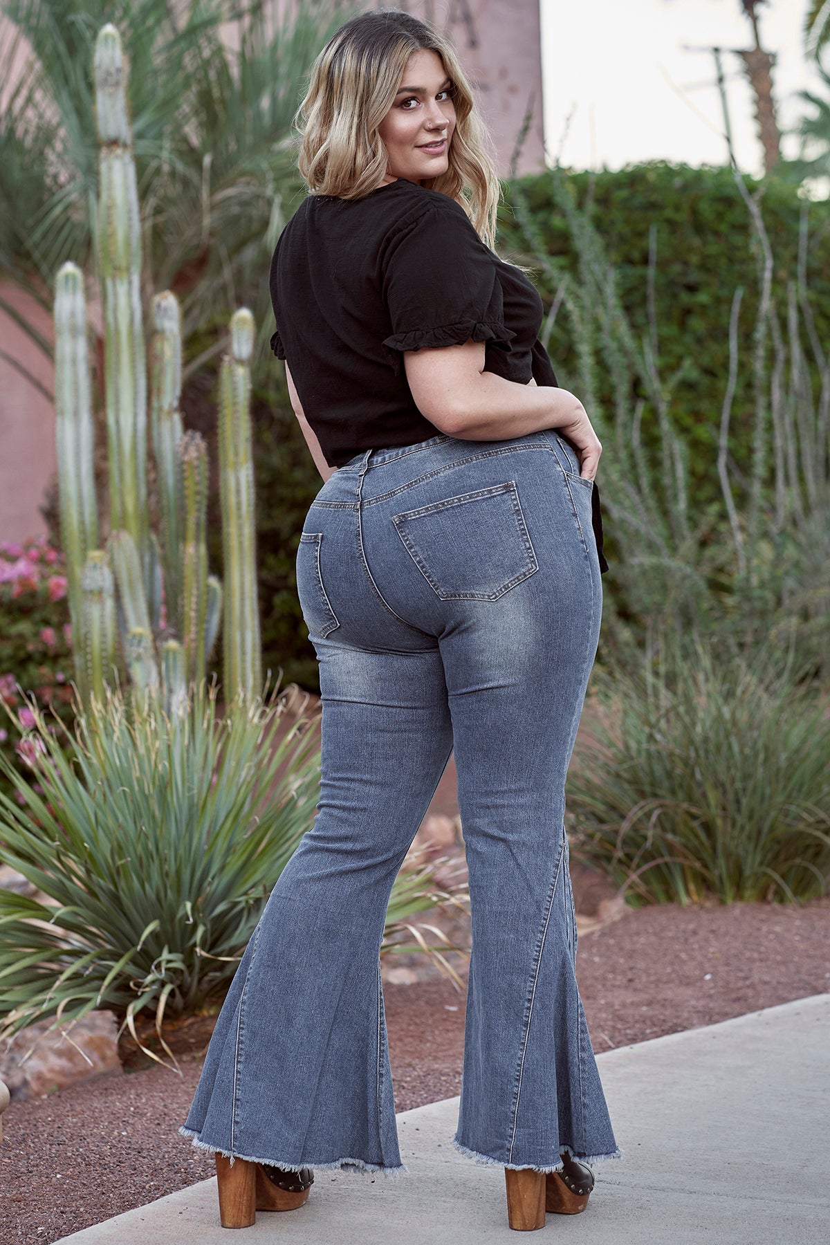 The INDIGO bell bottoms are a MUST HAVE for any wardrobe. They're the perfect mid wash denim. Features some stretch for a curve hugging fit. Can be worn with a blouse and heels for a night out, or a band tee and some sneakers for a relaxed vibe.