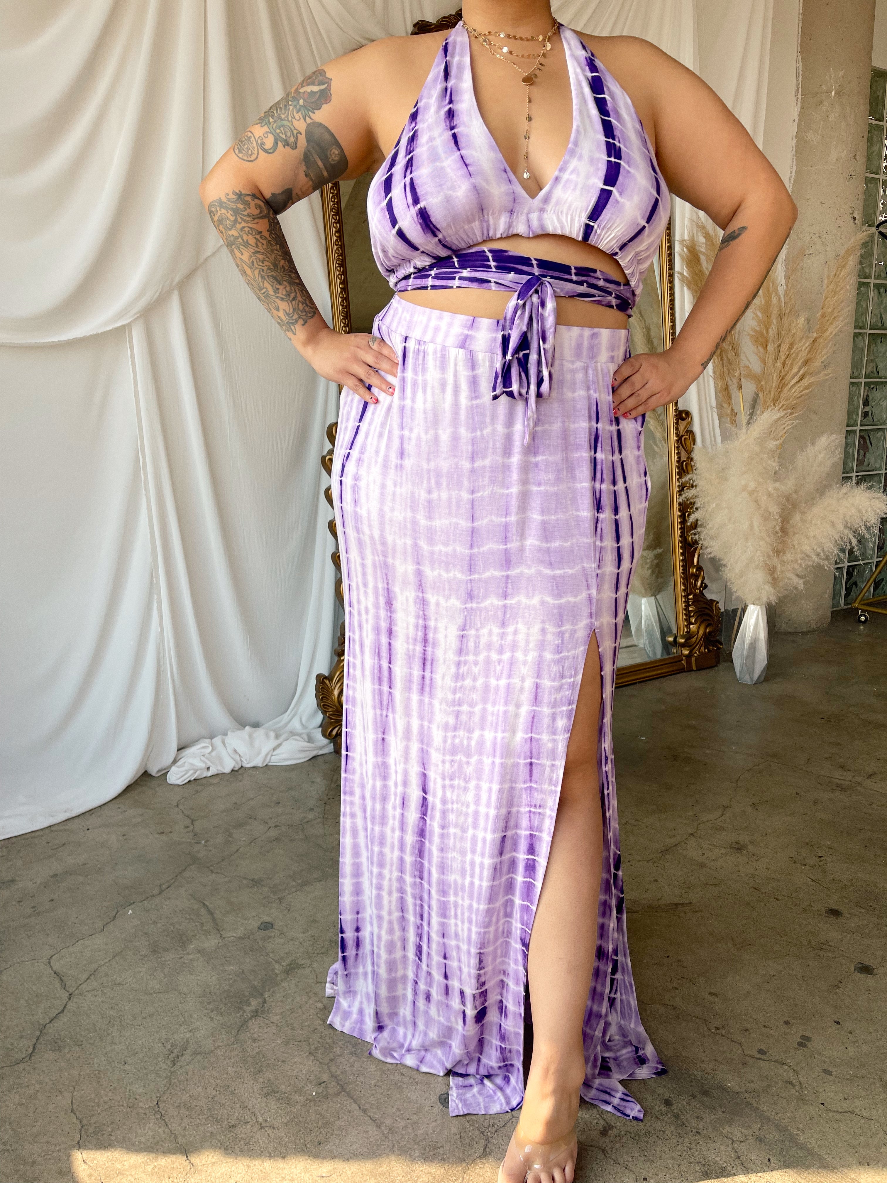 Modern and trendy, the JOLIE features a one of a kind print ( each garment is unique ). This 2pc set will quickly become one of your favs! Super soft stretchy cotton, completely adjustable wrap top with enough length to tie in front or back, built in lining and zip up closure. Don't forget the daring leg slit! Wear this with your fav heeled sandals!