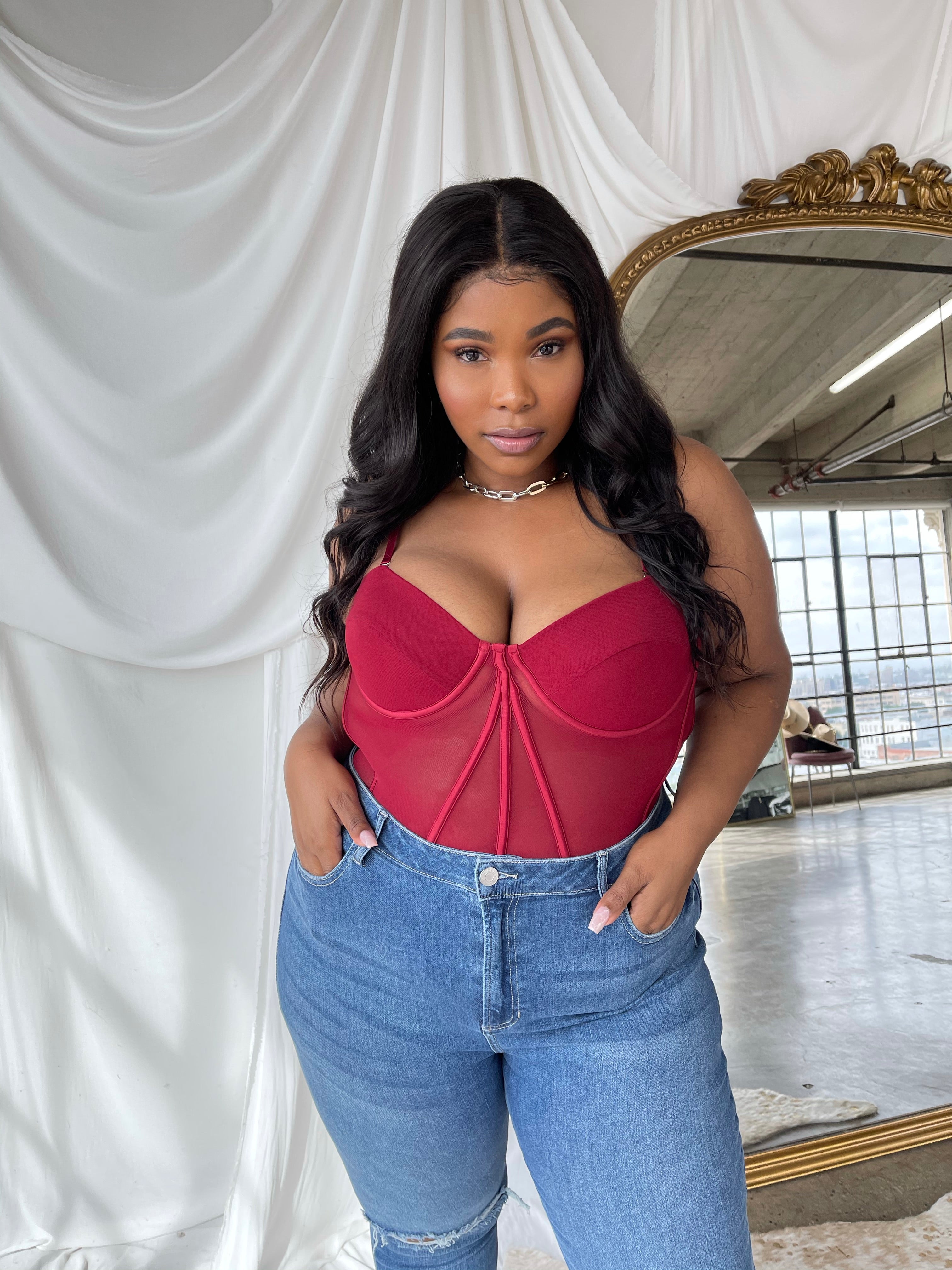 KALI Merlot Sheer Mesh Corset