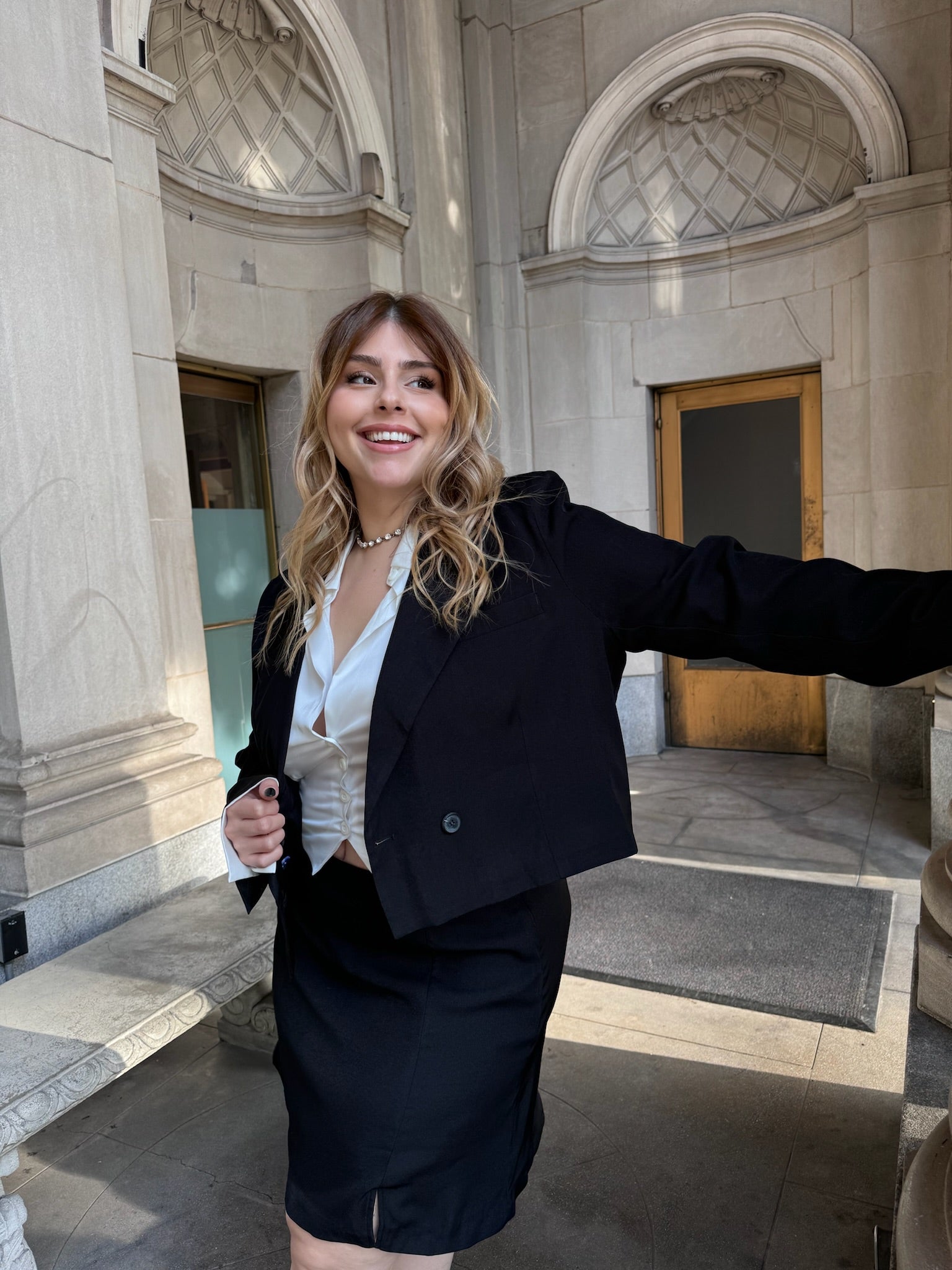 Elevate your wardrobe with our Cropped Blazer & Skirt Set. Designed to blend modern elegance and comfort, this set features a chic Cropped Blazer and coordinating Skirt. Perfect for professional settings or casual outings.