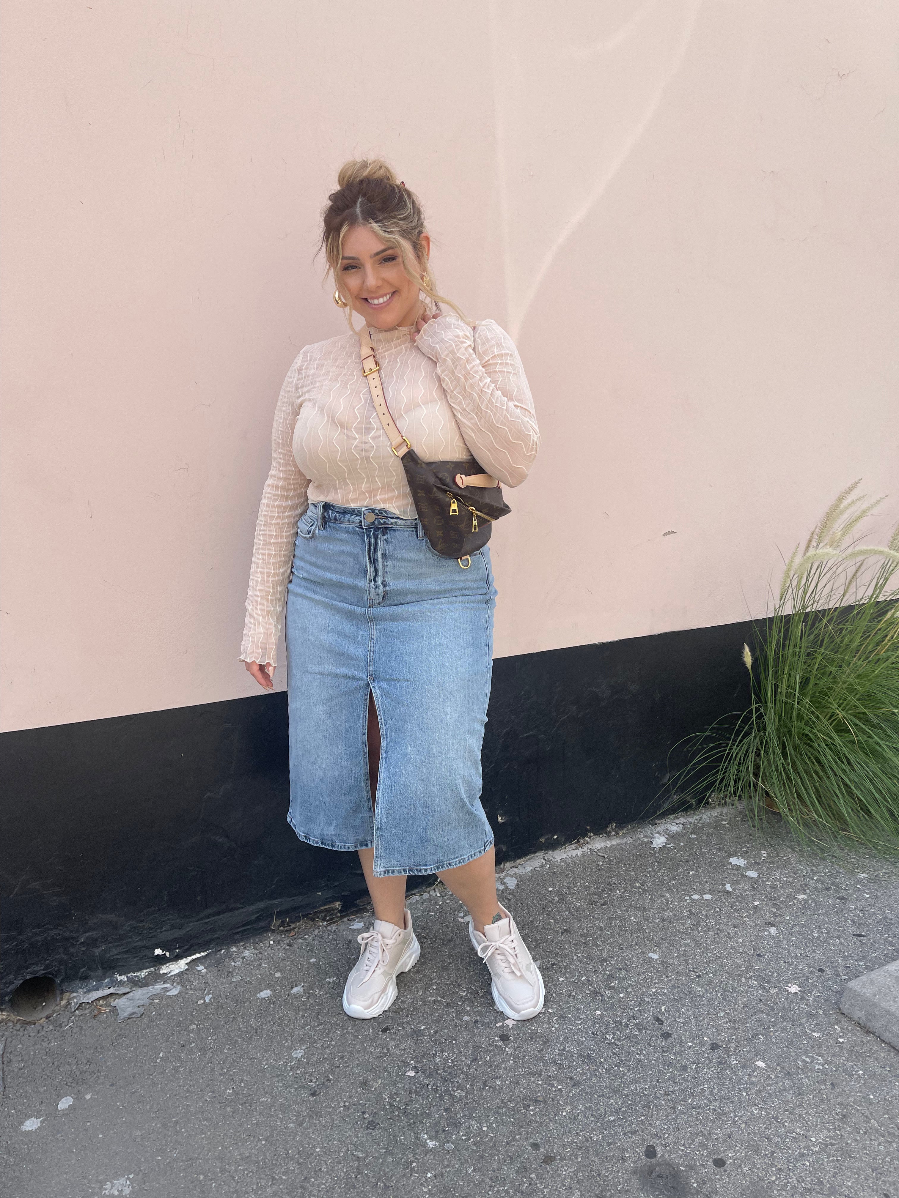 Meet LEXIE High Rise Midi Skirt. Featuring a high-rise waist, midi length, front slit, this skirt is the perfect addition to any wardrobe.
