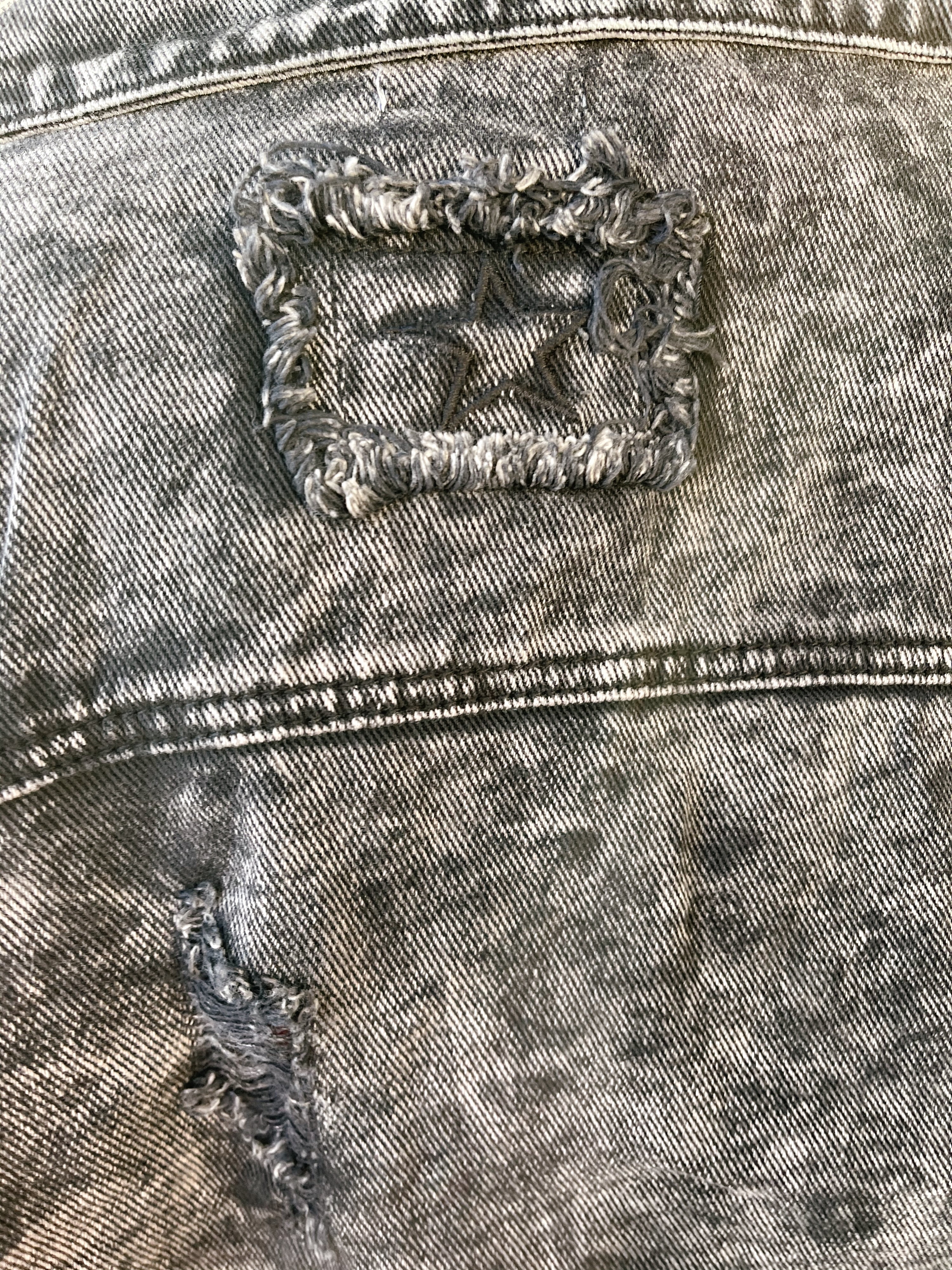 This easily styled Black denim jacket has you covered for those “Throw it on” days. The LIVED IN jacket features an oversized fit with drop shoulders and a distressed raw hemline.