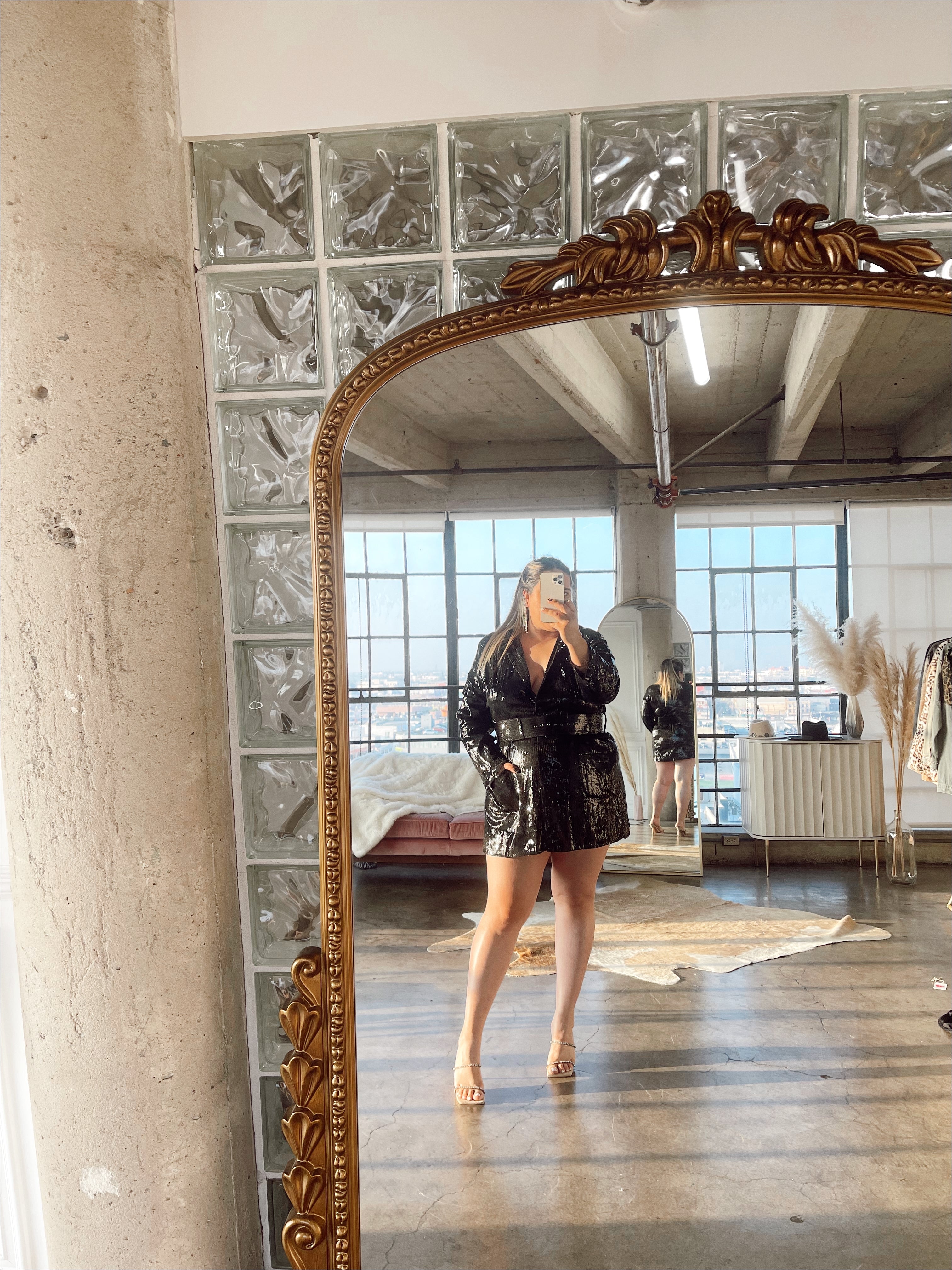 The DISCO dress is finally here! Full Sequin Blazer Mini Dress with collared detail. Fully Lined, not itchy and lightweight! True to size and comes with the belt! Style it with faux leather leggings and a cami for another vibe!