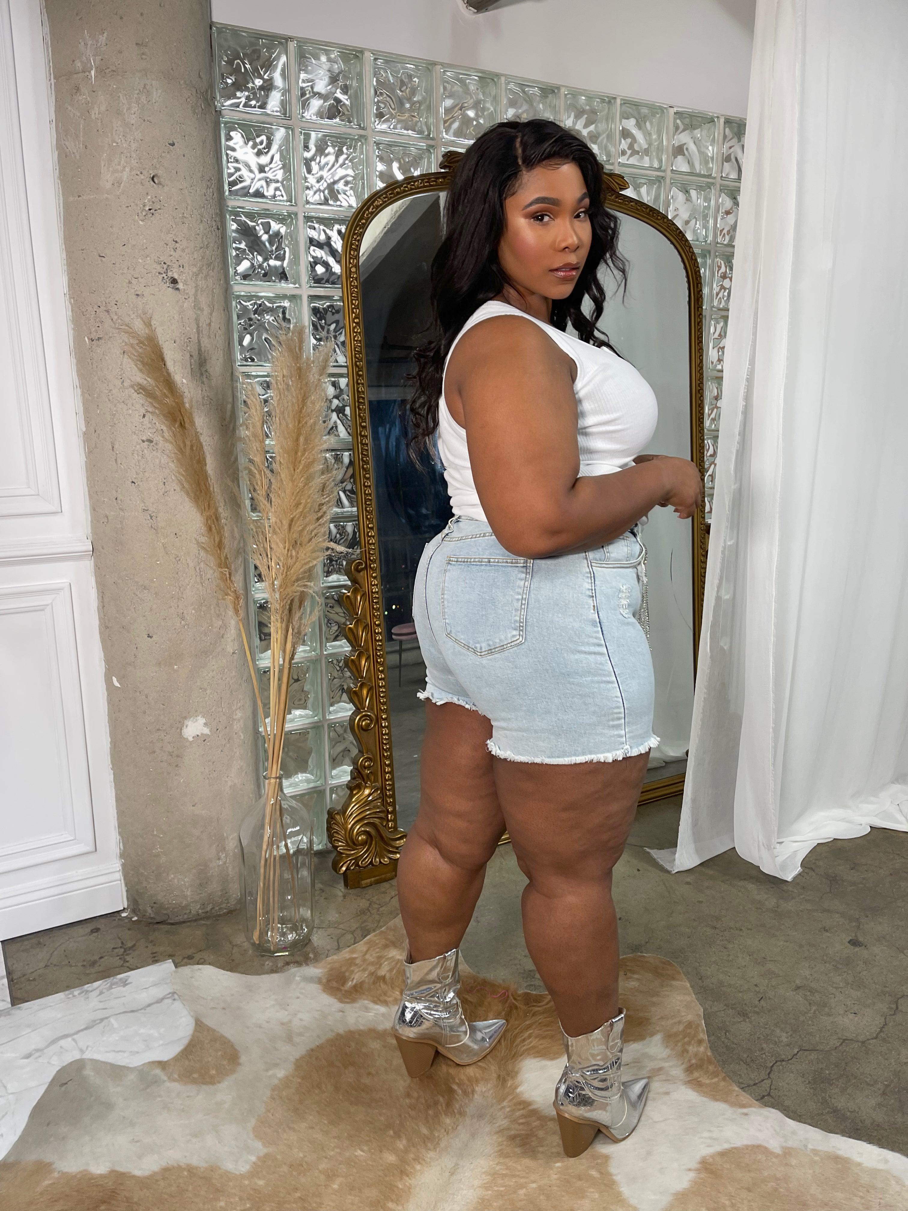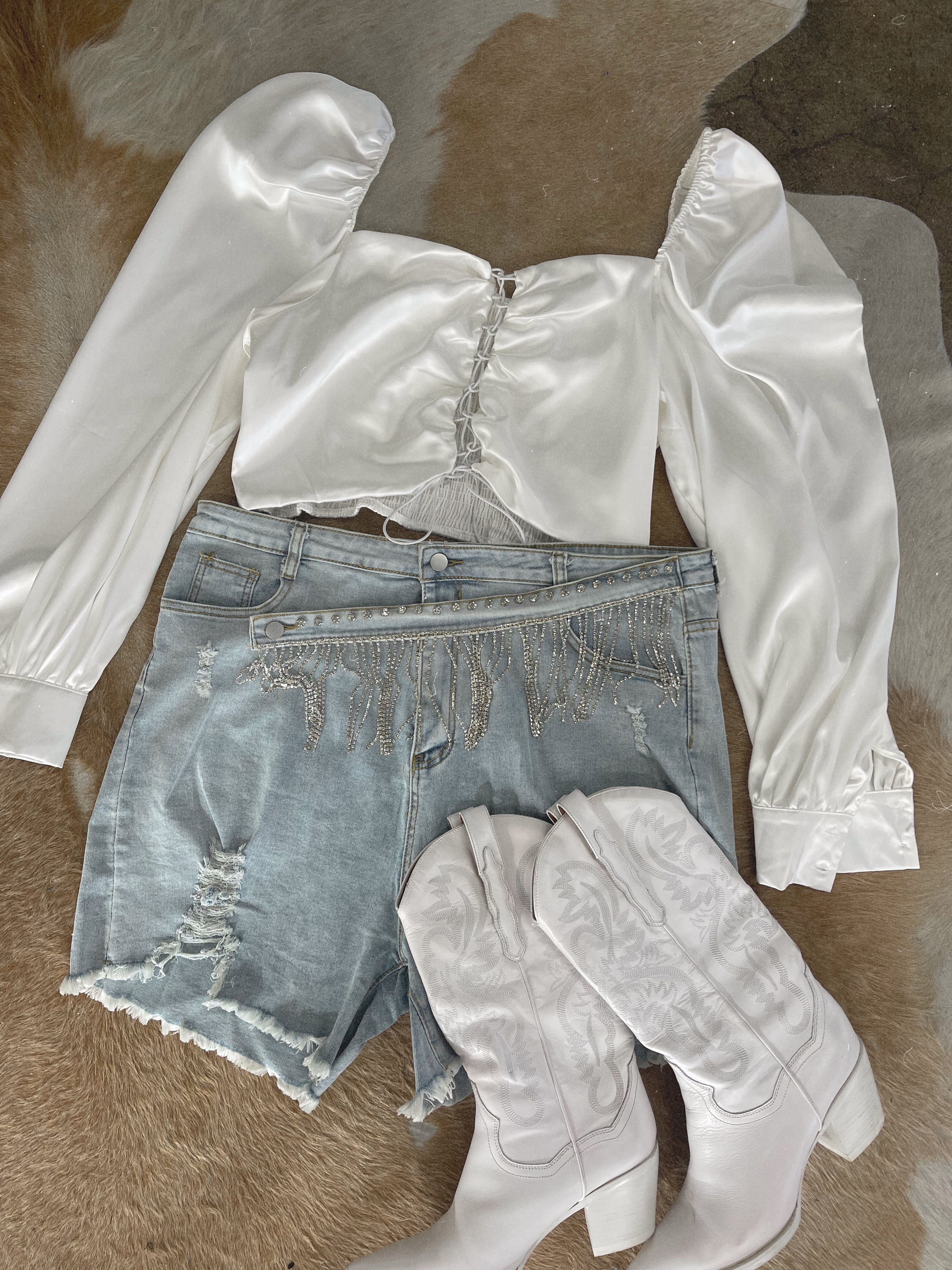 LETS GET WILDE Rhinestone Jean Shorts
