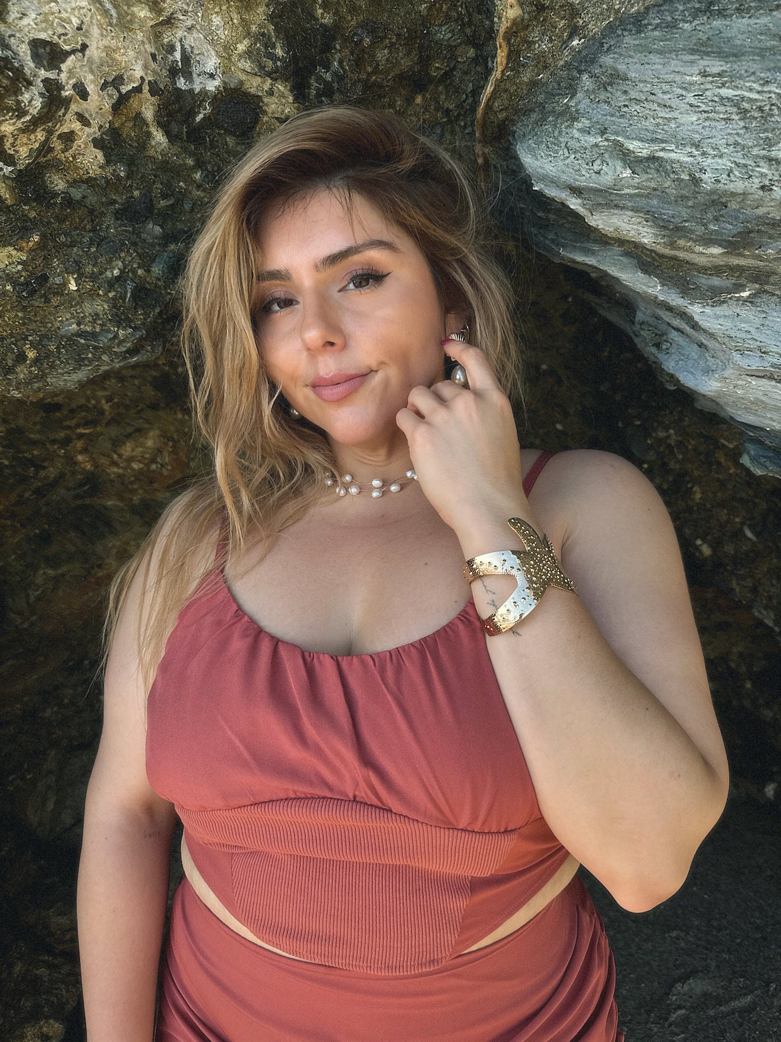 Stay stylish with this gold metallic starfish cuff bracelet. Adds a touch of shimmer to your outfit while channeling beachy vibes.