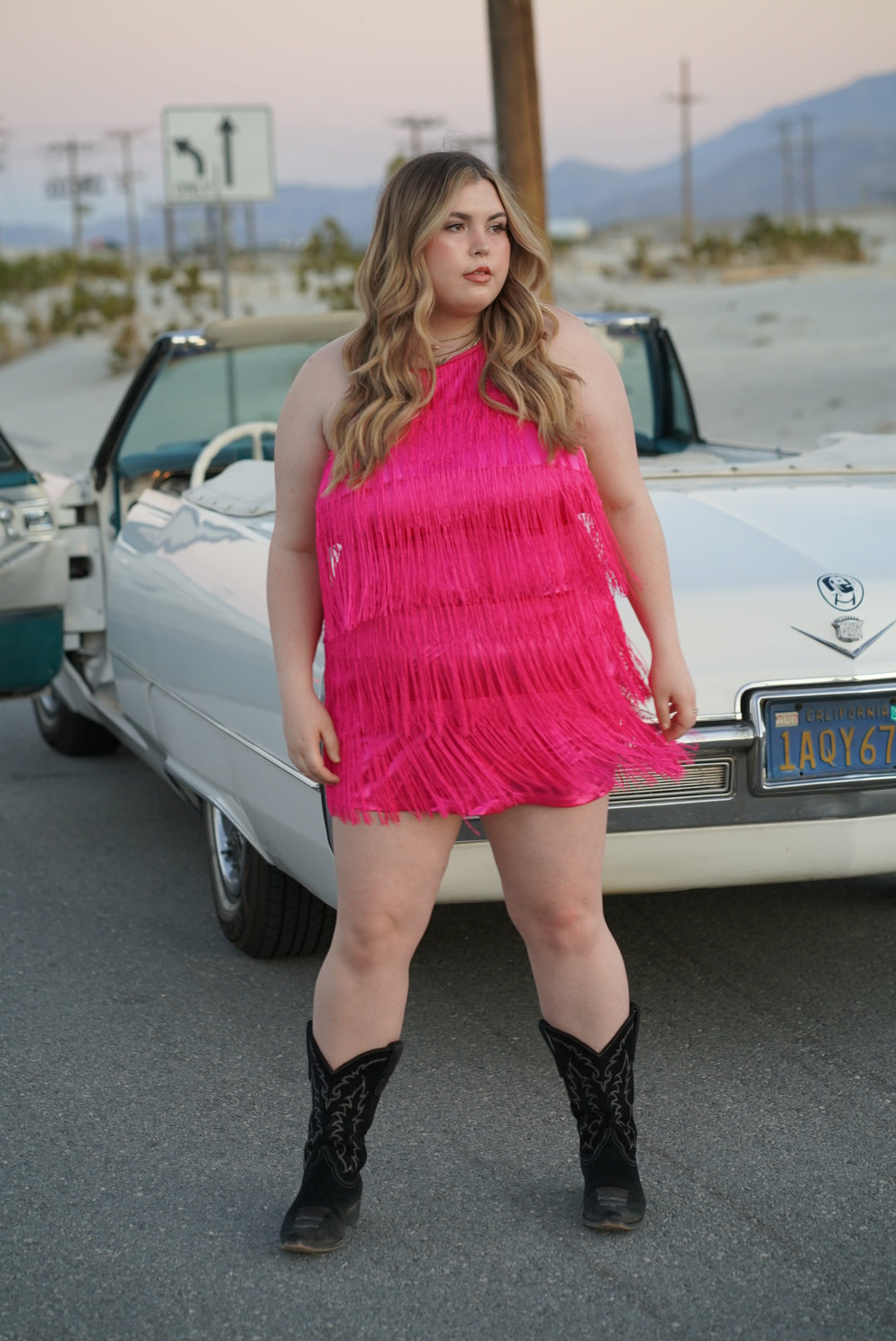The full fringe moment you didn't know you needed. The TERESA dress features a backless halter design with all over layered fringe detail. Size zipper closure and adjustable ties in back. Very little stretch, size up.