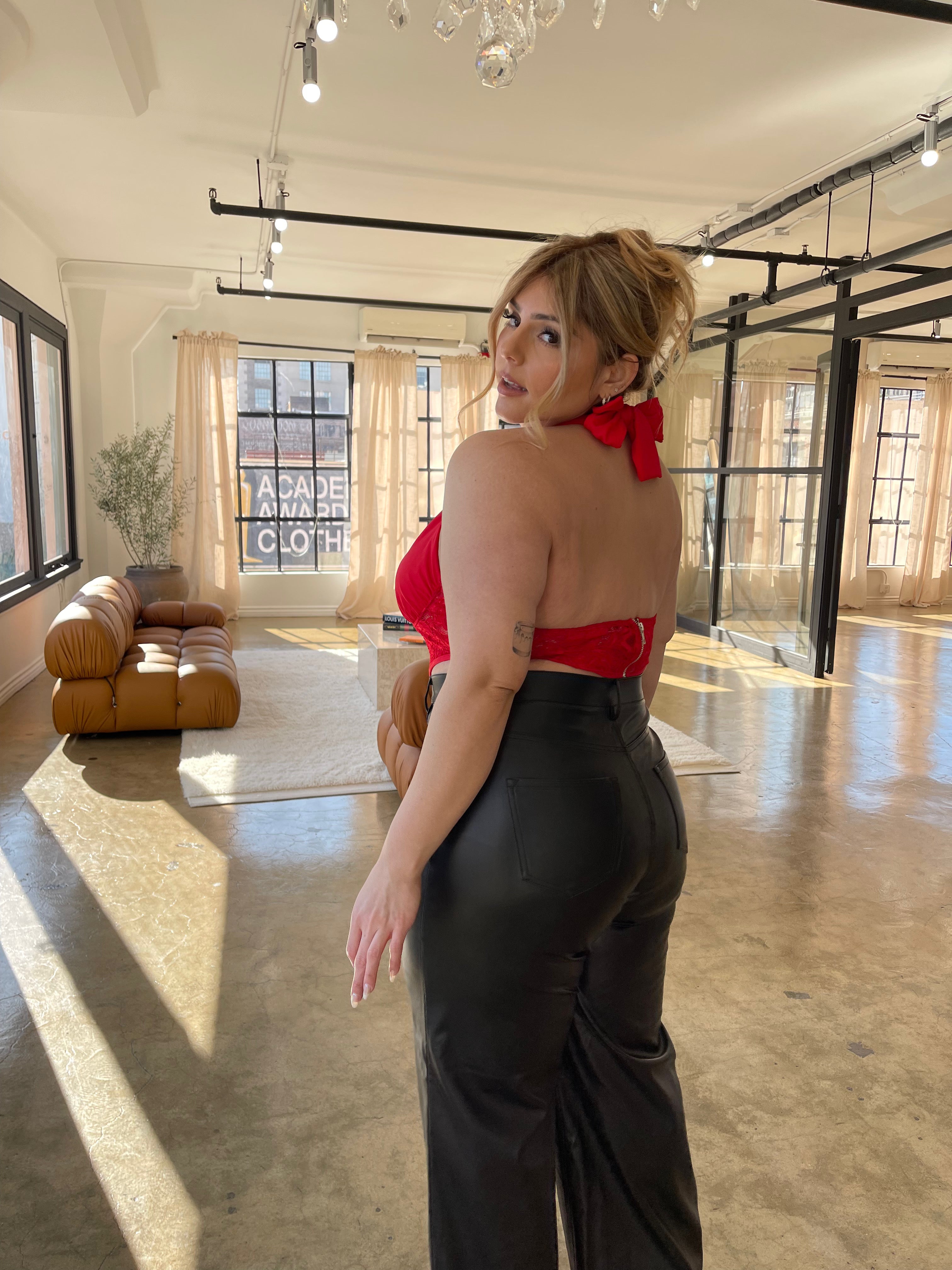 Meet VALENTINA, just in time for date night. Halter style neck wrap with a cross tie, very stretchy. Built in wire for support, lace is also stretchy with a zipper closure. Pair with your fav denim and heels for a night out!