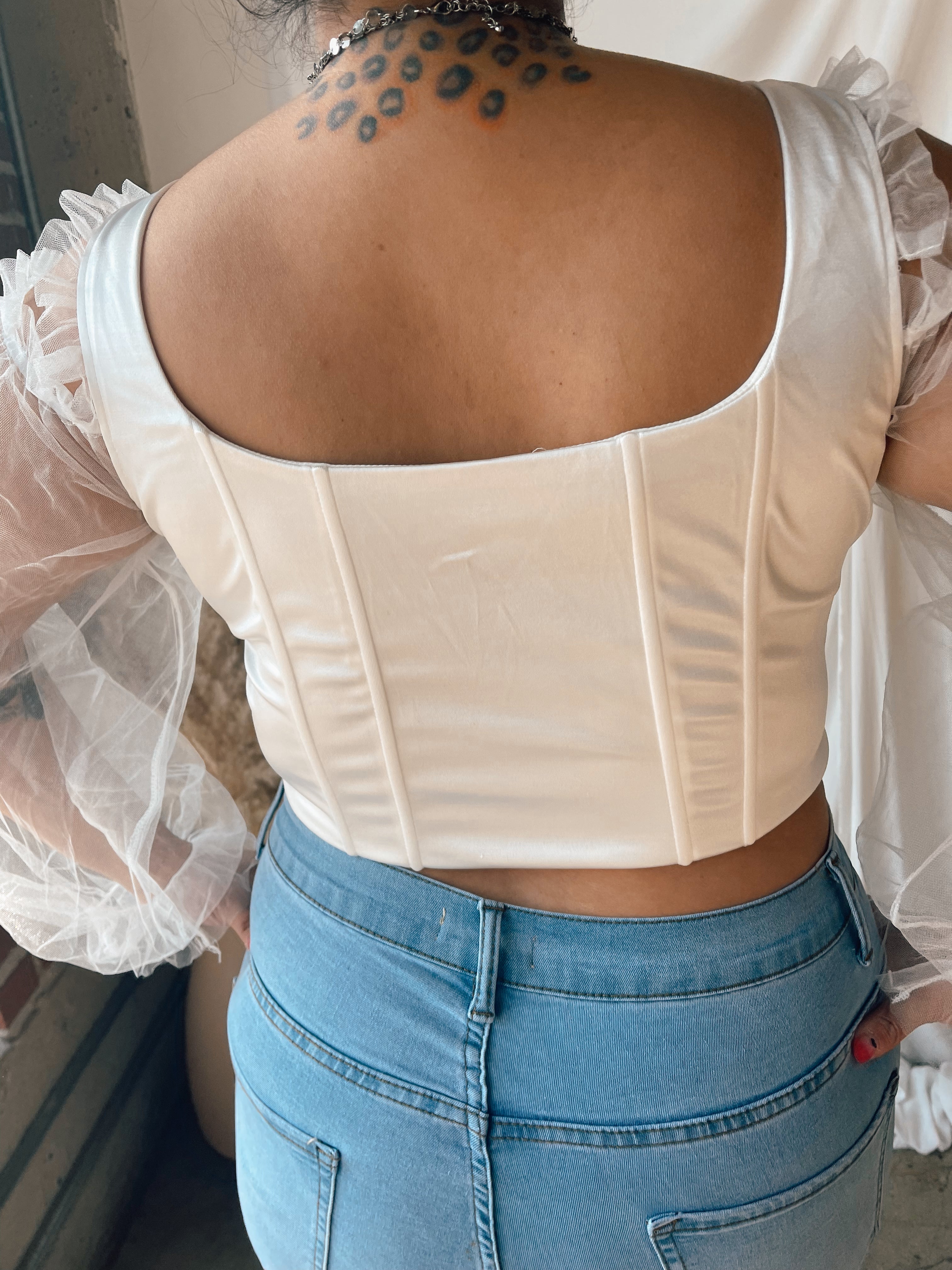 VICTORIA White Satin Cold Shoulder Corset Top